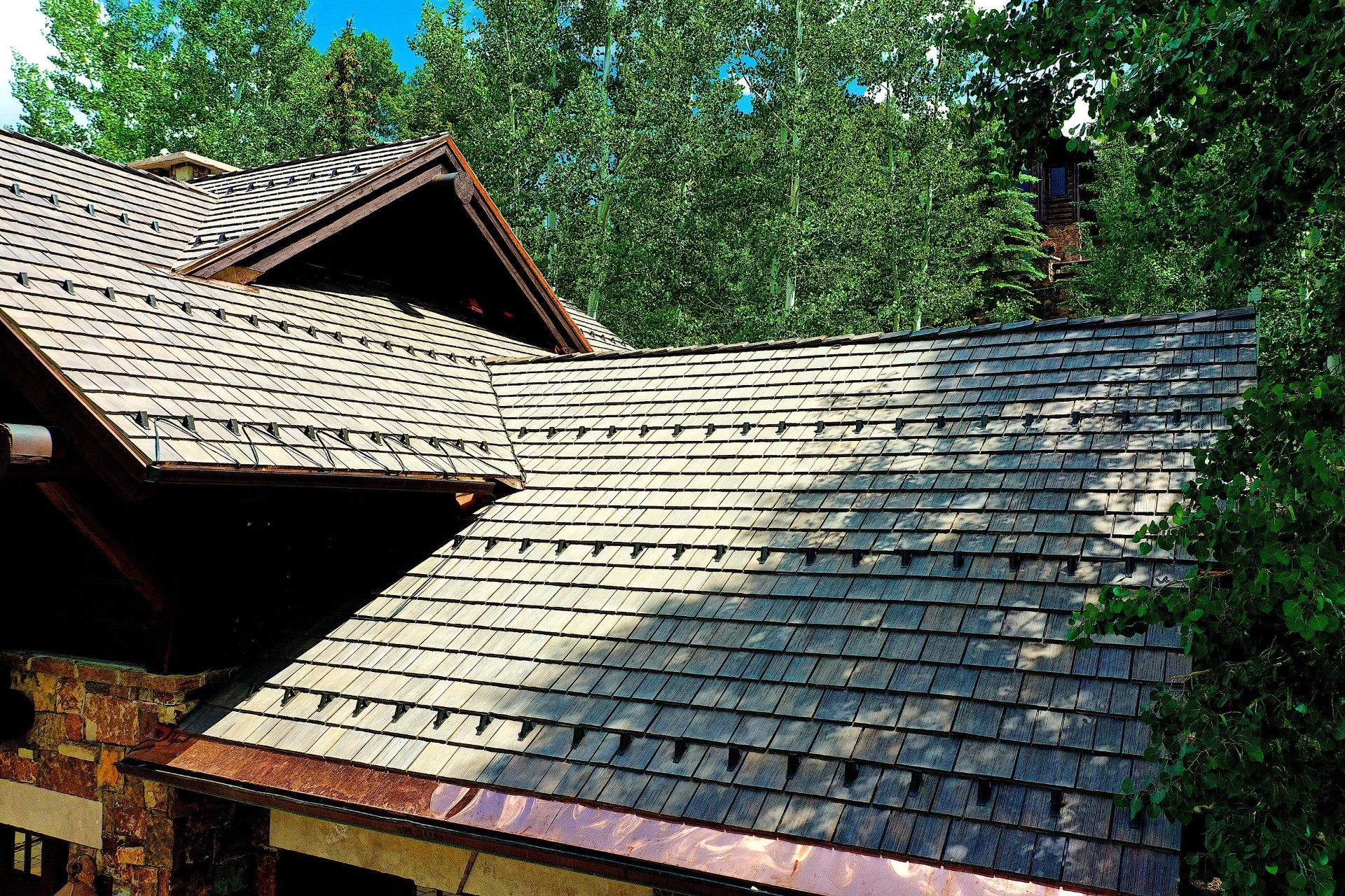 “We knew this roofing project was a winner right from the start,” says Alexander Wilmore, production project superintendent for Umbrella Roofing out of Eagle, Colorado. “Anytime you have a DaVinci Roofscapes® synthetic shake roof with a Rocky Mountain Snow Guards snow retention system, it’s a winner to us here at Umbrella Roofing.